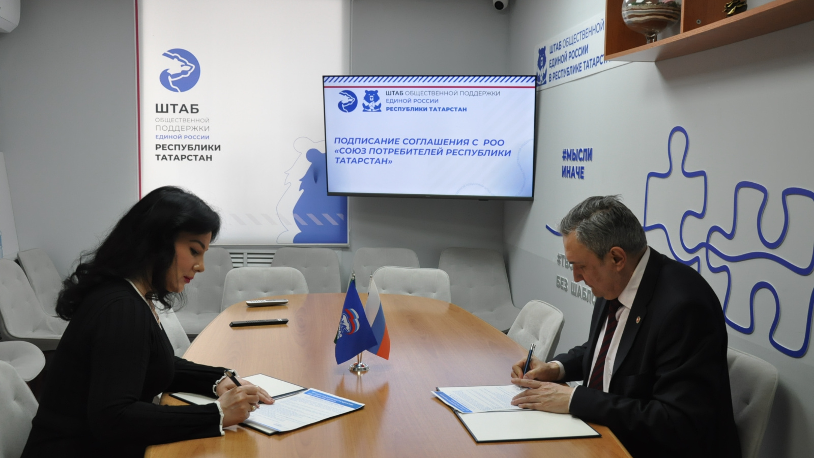 КАЗАНЬ. В Региональной приемной Д.А. Медведева состоялось подписание соглашения о сотрудничестве между Центром объединения гражданских инициатив «Единые» в Республике Татарстан и Региональной общественной организацией «Союз потребителей Республики Татарстан». Документ закрепил намерения сторон развивать долгосрочное партнерство в целях содействия реализации их уставных задач.